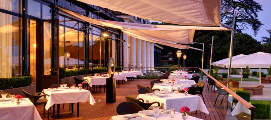 Ce restaurant gastronomique doublement étoilé offre deux menus aux plats inspirés. Le choix se portera soit, sur le menu Emotions, une carte qui joue sur la sensibilité et les associations subtiles comme avec cette langoustine saisie à la plancha et son bouillon léger à la pomme verte ; soit, sur le menu « Pic collection » où l’héritage de la cuisine familiale et ses valeurs de transmission priment. En témoigne, le bar de ligne au caviar d’Aquitaine « comme l’aimait [son] Père, Jacques PIC, 1971 ». Hormis ces deux menus d’exception, le restaurant propose des plats à la carte avec 4 entrées où figure l’étuvée de petits légumes et son coulant de Parmigiano Reggiano, 4 plats autour du poisson et des crustacés où baigne un homard bleu rôti dans un dashi aux fruits rouges et 4 plats autour de la viande comme le carré et la selle d’agneau rôtis servis avec un crémeux de blettes à la fève Tonka et thé Genmaïcha. Sans oublier la carte des desserts où trône sa recette signature : le Mille-Feuille blanc (crème légère à la vanille de Tahiti, fine gelée au Jasmin et émulsion au poivre Voatsiperifery). Des plats également mis en valeur par Thibaut Panas, le Chef sommelier – élu Sommelier de l’année en 2014 par Gault&Millau – qui sait trouver l’accord juste parmi les 3 000 références, soit plus de 75 000 bouteilles que comptent le palace. Ce qui fait l’une des caves les plus importantes d’Europe.