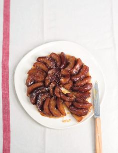 Le nombre de pommes n'est à surtout pas négliger dans la très classique tarte Tatin de Julie Andrieu. Le secret ? Une portion généreuse de pommes simplement coupées en deux - bien rangées et bien serrées -, et près de trois heures de cuisson pour assurer des fruits fondants et parfaitement caramélisés. La patience et ses vertus...