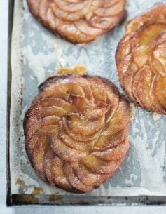 Pour maximiser l’effet confit que la tarte Tatin prend habituellement après cuisson, Philippe Conticini propose dans sa recette de tarte Tatin de réaliser ce qu’il nomme un** jus Tatin **pour napper les pommes, qui s’en imprégneront avant même de passer au four. Pour cela, les pommes doivent être découpées en lamelles extrêmement fines. Un streusel à la noisette et à la fleur de sel viennent apporter cette touche croquante toujours bienvenue.