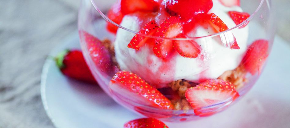 Pour changer de la traditionnelle Pêche Melba, , Christophe Michalak troque les pêches contre des fraises dans ce dessert glacé si simple à réaliser. Des fraises, des shortbreads, de la vanille, de la crème et un peu de citron, le tour est joué !