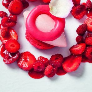 Il arrive à ce fruit de ne pas faire cavalier seul. On le retrouve d'ailleurs souvent associé à d'autres fruits comme la rhubarbe, ou à des fruits rouges comme dans cette recette aérienne de Guy Savoy, où le sorbet de fruits des bois se retrouve délicatement recouvert d'un sabayon à la framboise. Toujours sur note délicate et féminine, l'Ecole de Cuisine d'Alain Ducasse propose de l'associer à une fleur, la rose. Une recette en pas à pas qui vous montre toutes les étapes de la fabrication du macaron à la fraise garnie non pas d'une ganache, mais d'une glace à la rose. Divin, comme cette recette poétique signée Claire Heitzler (voir ci-contre), dans laquelle un dôme de mousse de champagne rosée renferme un sorbet fraise-champagne surplombé d'une tartelette fraises des bois-litchi. Une créativité sans limites.