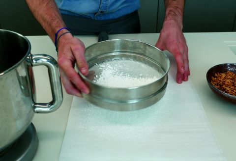 Ajoutez délicatement le sucre glace tamisé à la maryse.