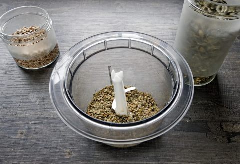 Placer les graines de courge et les graines de tournesol dans le bol du mixeur. Mixer pendant quelques secondes, jusqu'à l'obtention d'une poudre grossière.