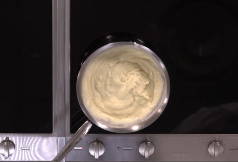 Dans une casserole, porter à ébullition le lait et la crème. Mélanger les œufs, le sucre, la poudre à crème et la vanille liquide puis l'ajouter dans la casserole. Mélanger et cuire la crème jusqu'à la première ébullition afin qu'elle devienne épaisse. Verser l’appareil dans le fond précuit et enfourner à 220°C jusqu’à ce qu'il soit coloré. Laisser refroidir et démouler.