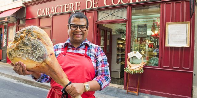 En plein dans le Marais, une échoppe 100% cochonne : ici, c’est le paradis du jambon. Qu’il vienne d’Espagne, d’Italie, d’Allemagne ou qu’il soit bien de chez nous (un bon jambon de Paris prêt à garnir une baguette beurrée), un seul impératif : qu’il soit parfait. Et pour compléter le panier, il est aussi possible d’ajouter une tranche de lard ou un saucisson, quelques antipasti, une bonne bouteille ou une conserve de terrine.