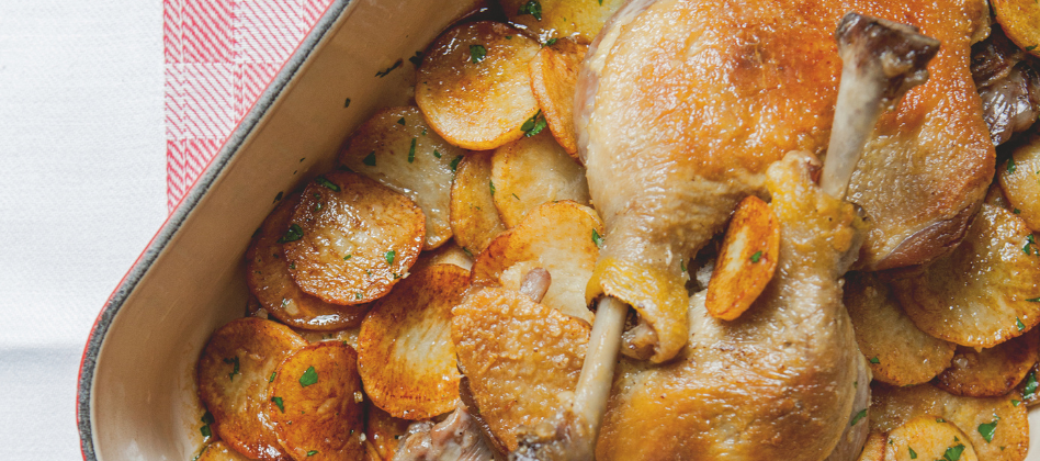L'association parfaite ? Cuisse de canard confite et pommes de terre sarladaises ! Le plus ? Faire cuire les pommes de terre dans la graisse de canard.