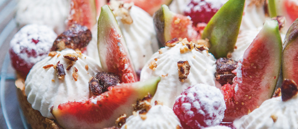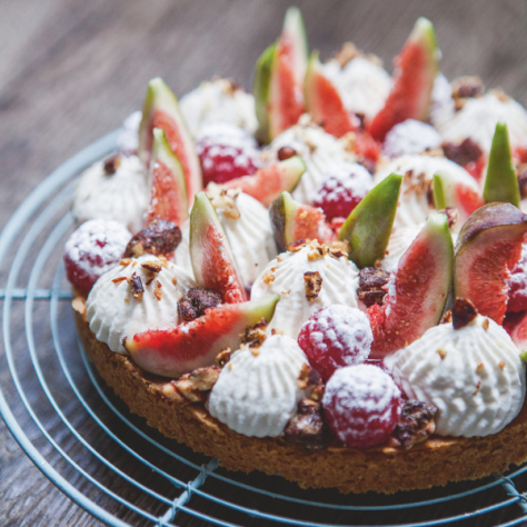 La figue, fruit de fin d’été, entre ici en dialogue avec des notes de poire & pécan. Le biscuit croustillant, la crème onctueuse et les fruits mêlés composent un dessert aérien et élégant – parfait pour clôturer une table estivale.