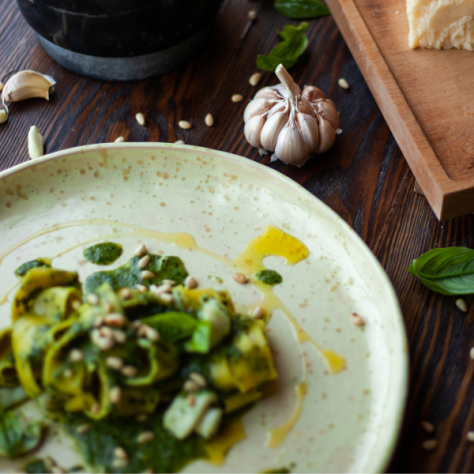 Des pâtes larges délicatement nappées d’un pistou maison — basilic, ail, huile d’olive — pour un plat simple, parfumé, au caractère méditerranéen. Un classique revisité qui répond à vos envies de plats généreux mais équilibrés.