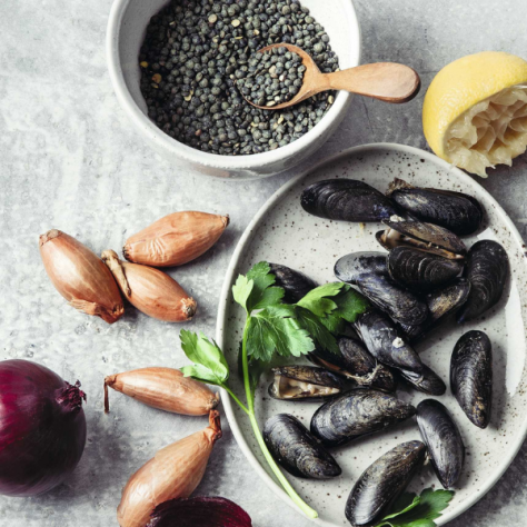Une alliance terre-mer subtile : des moules marines et des lentilles rustiques, relevées par une vinaigrette équilibrée. Une salade complète, fraîche et rassasiante, tout à fait dans l’esprit de fin d’été.