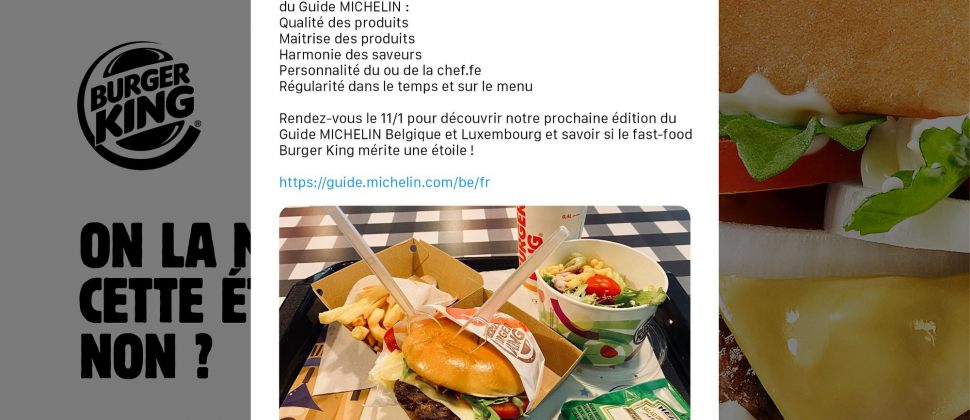 En Belgique, un restaurant Burger King a interpellé le Guide Michelin pour demander une étoile, à l'occasion de la sortie de son dernier burger, rapporte RTL.