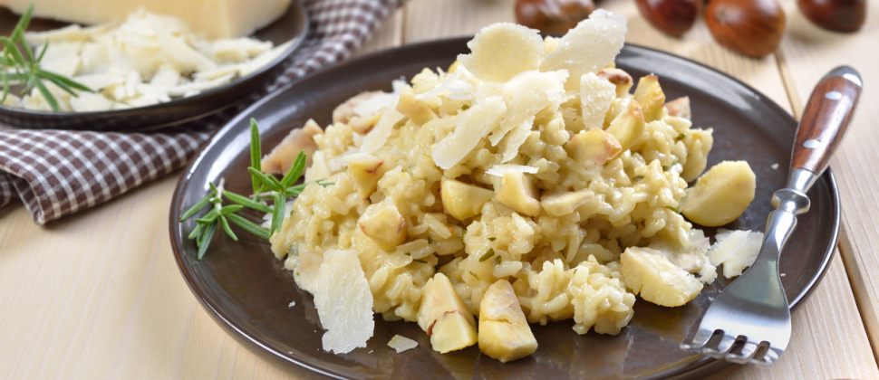 Emblématique de la gastronomie italienne, le risotto nous séduit par sa délicatesse et sa texture délicieusement crémeuse. Autre atout, il s’adapte à tout et peut se décliner au fil des saisons. En ce début d’automne où les châtaignes abondent, c’est donc le moment idéal pour réaliser cette recette d’Alain Ducasse. Relevé de pancetta et de pecorino, ce risotto aux châtaignes va assurément bluffer vos convives.