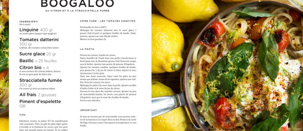 [Big Mamma, c’est aussi un livre de recettes, coécrit par les 200 employés du groupe, et dont Victor Lugger nous a raconté la naissance : « Dans nos restaurants, la carte change tous les mois et chacun apporte sa contribution. Qui le plongeur chez qui on fait des pâtes aux pois chiches… qui le barman torinois qui connaît une recette de friture. Dans ces réunions où on réfléchit à la carte, je bois du petit lait. C’est plein d’histoires, plein d’anecdotes. L’idée du livre est venue naturellement, des équipes. » Pas étonnant que l’ouvrage renferme tout l’esprit des restaurants Big Mamma : bonne humeur, passion, savoir-faire. Aidés de Victor Lugger, on y a pioché cinq commandements pour cuisiner italien comme une big mamma.