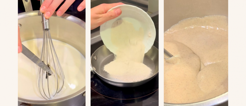 - Ajouter de la poudre d'amande et de la farine de sarrasin dans le lait infusé à la vanille