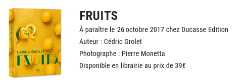 Sortie imminente pour le tant attendu Fruits de Cédric Grolet (Ducasse Edition). Histoire de patienter jusqu’au 26 octobre, nous vous proposons en avant première de vous procurer l’un des 200 exemplaires - tous signés par le chef - de ce recueil de 100 recettes qui rend hommage aux sept grandes familles frugales.