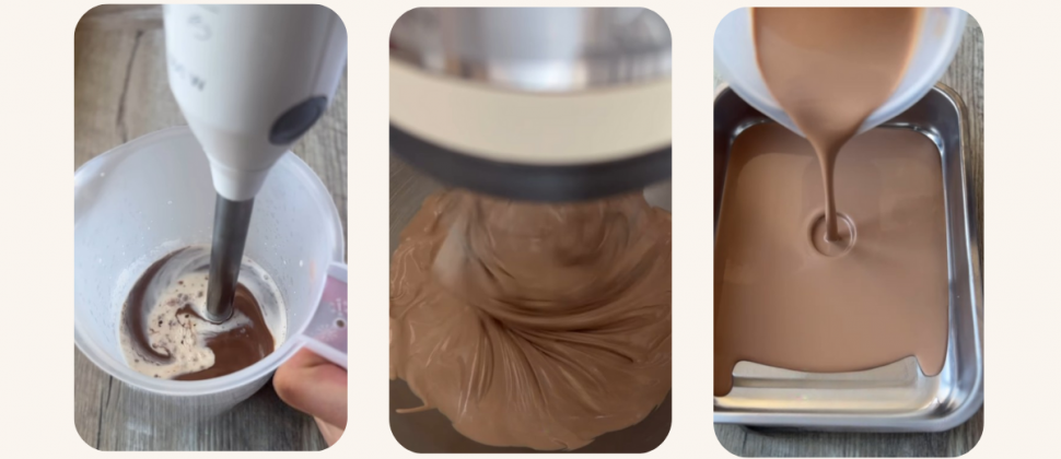 Mixer correctement : garde le mixeur légèrement incliné pour éviter d’incorporer de l’air, ce qui fragiliserait la ganache.