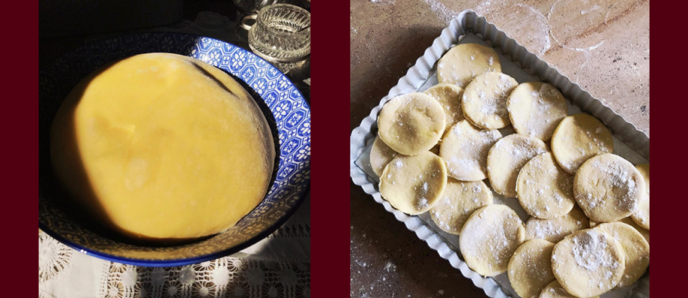 Sortez la pâte et étalez-la sur 5 à 6 mm d’épaisseur, puis détaillez avec un emporte-pièce rond au diamètre souhaité.
