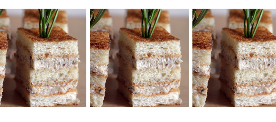 Faites griller les tranches de pain de mie et tartinez-les ensuite d’une coupe épaisse de crème de sardines et monter sur 3 niveaux.