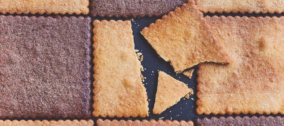Incorporez la farine en trois fois et mélangez jusqu'à ce que l'ensemble soit homogène sans trop travailler la pâte. Formez la en un disque, filmez et réservez au réfrigérateur pendant 8 heures. Ensuite, étalez la pâte sur 3 mm et la détaillez avec un emporte-pièce carré cannelé de 10 cm de côté. Faites cuire au four pendant 20 minutes à 160°.
