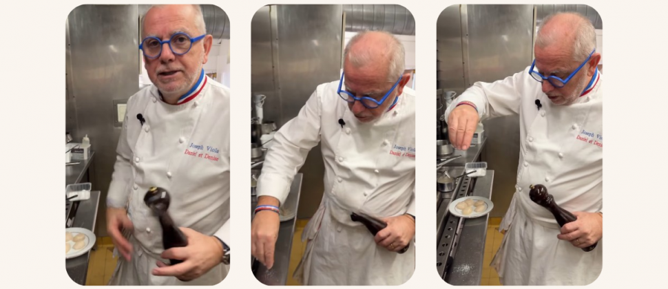 Dans toute cuisine — qu’elle soit gastronomique ou familiale — la répartition du sel est essentielle. Selon l’astuce de Joseph Viola : il faut saler en hauteur, avec un geste ample et fluide. Pourquoi ?