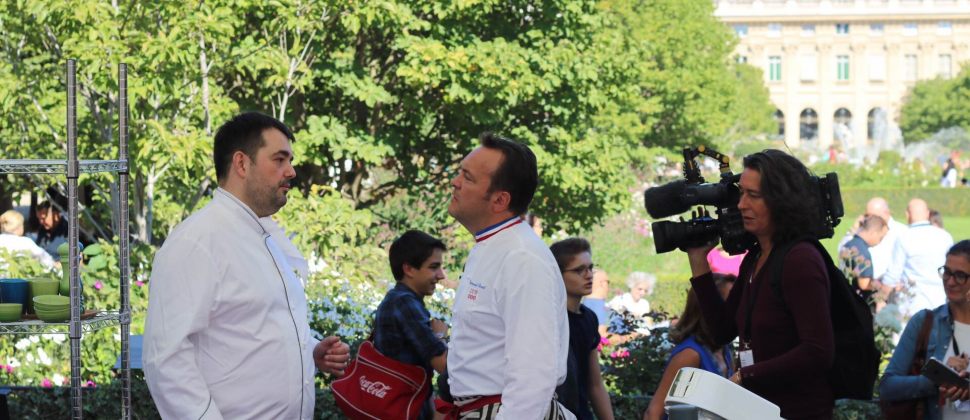 Samedi 24 septembre, 11h30. Alors que partout en France (et même parfois ailleurs), la Fête de la Gastronomie bat son plein, quelques badauds assistent, médusés, à une joute culinaire au beau milieu des jardins du Palais-Royal. Les fines gueules reconnaissent, derrière l'une des deux scènes, le MOF Emmanuel Renaut qui s’attelle à préparer un beau canard des Landes... le même que l'on retrouve quelques mètres plus loin, en plume et en os, aux côtés de son producteur. À quelques pas de là, Julien Duboué, chef d'A Noste et auteur d'un livre 100% Sud-Ouest tout juste paru aux Editions Alain Ducasse, garnit des galettes à la farine de maïs (appelées taloas) de confit de canard et de piquillos. Un événement hautement gourmand où ont été aperçus Hélène Darroze, Régis Marcon, ou encore Jean-François Piège papotant avec Michel Guérard, légende vivante de la gastronomie française.