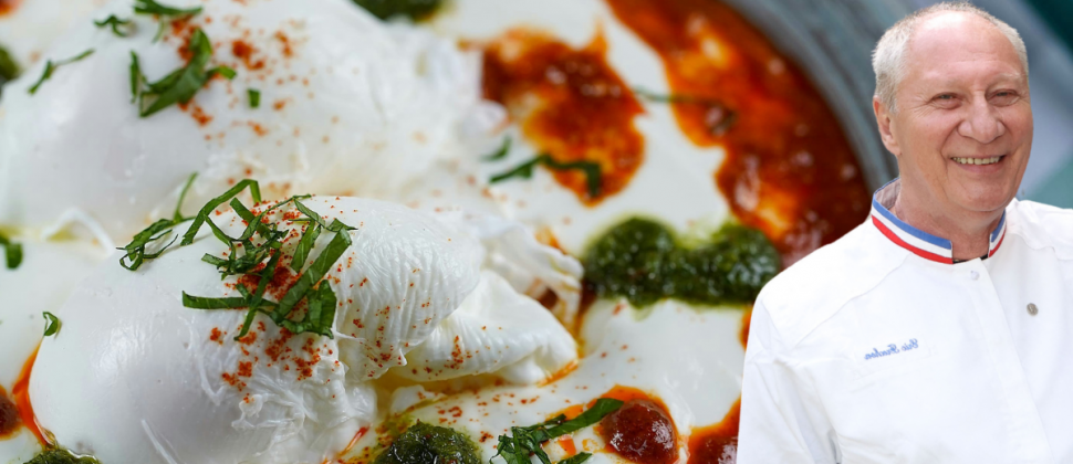 Chef iconique qui a officié au Bristol Paris pendant 25 ans, Éric Frechon s’est imposé comme l’une des figures majeures de la gastronomie française. Couronné de trois étoiles au Guide Michelin et Meilleur Ouvrier de France, il maîtrise comme peu d’autres l’art des préparations délicates. Parmi ses gestes signature : la réalisation d’œufs pochés à la perfection, à la fois fondants, nets et impeccablement formés. Il propose deux techniques, l’une traditionnelle et l’autre plus technique, inspirée de la cuisson basse température.