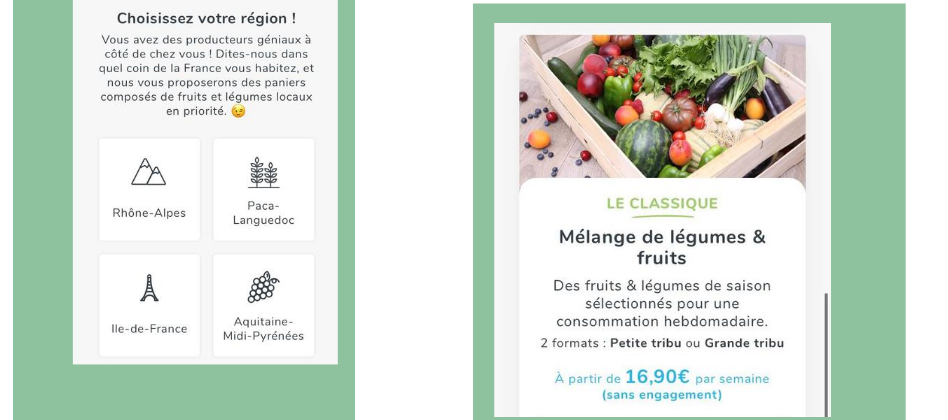 Pour ma première commande, je renseigne le nom de ma région, et l’application Potager City me propose des paniers composés de produits qui ont poussé en priorité autour de moi. Le “classique” mêle par exemple fruits et légumes. Je choisis la taille de mon panier en fonction de celle de ma tribu. En bref : du sur-mesure pour tenir une semaine avec de l’ultra-frais, en direct des producteurs. Je peux aussi compléter ma commande avec des paniers à la carte. Ce jour là, c'est le panier 100 % tomates qui me fait de l’œil.