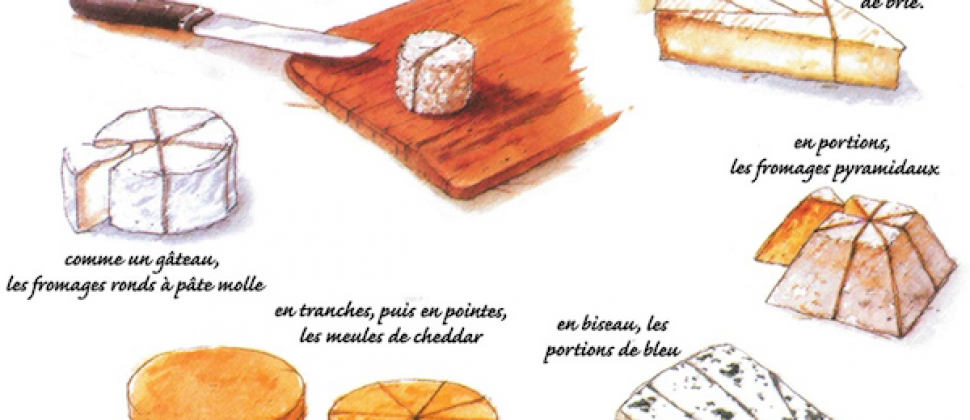 Découper un fromage ne se fait pas de manière hasardeuse. L'image ci-dessous en est la parfaite illustration. Mais encore faut-il choisir le bon couteau ! Pour les fromages à pâte molles (à croûte fleurie ou non) comme le camembert ou le maroilles, optez pour un couteau à fromage dont la lame est ajourée, cela évitera au fromage de coller à la lame. Pour les fromages à pâte mi-dure comme le fromage à raclette, un couteau à lame dentelée ou lisse suffira. En revanche, un couperet à fromage sera (presque) indispensable pour les fromages à pâte dure comme l'emmental ou le beaufort. Le couteau double pointe peut servir pour différentes catégories de fromages mais sert surtout à piquer et récupérer le fromage après l'avoir découpé. Enfin, les fromages d'aspect friable comme le parmesan, le pecorino ou le vieux comté nécessitent l'utilisation d'un ciselet (ou couteau à parmesan), un petit couteau dont lame est courte et arrondie (en forme d'amande) qui permet d'entailler la pâte. Vous n'avez plus aucune raison de faire l'impasse sur un beau plateau de fromages !