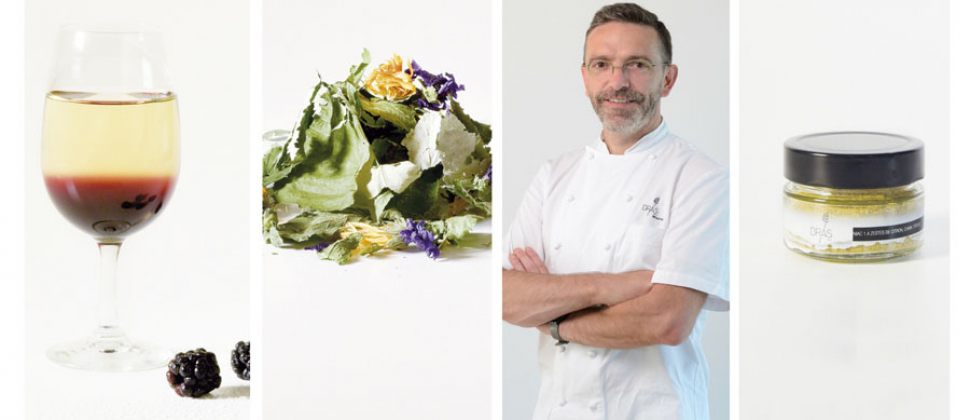 Le chef tient à ce que les cueillettes sauvages soient réalisées dans le respect des saisons et des ressources. « C’est un pur et dur de l’Aubrac qui récolte feuilles de ronce, mauve, soucis… Les plantes proviennent d’endroits secrets du plateau. Et un certain nombre pousse dans le jardin de mon père, Michel. Il en faut pour le restaurant donc il n’y en a peu », détaille-t-il. Des plantes cueillies au bon degré de floraison, travaillées de manière raisonnable et raisonnée dans le respect de l’environnement « pour continuer à grandir et exister. »