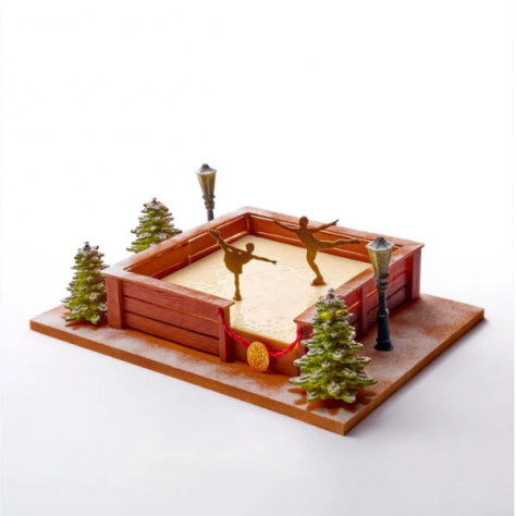 Le Plaza Athénée mise sur le spectacle avec sa bûche baptisée « La Patinoire du Plaza Athénée ». Signée par Angelo Musa et Élisabeth Hot, cette pièce met en scène un décor miniature rappelant la magie de Noël : barrières en chocolat blanc, sapins miniatures et patineurs en sucre.