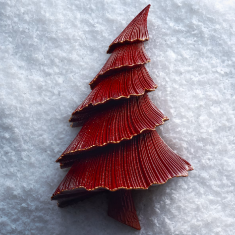 Au Bristol Paris, le chef pâtissier Maxence Barbot présente une bûche sculpturale en forme de sapin. Composée de chocolat au lait de Madagascar, de crémeux vanille de Tahiti, de mousse chocolat 65 % et d’un caramel aux fleurs, elle se distingue par sa finesse et son esthétisme.