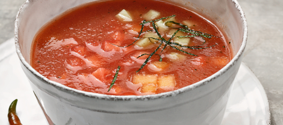 Tantôt considéré comme boisson rafraîchissante, tantôt comme soupe froide, le gaspacho est très apprécié au plus fort de l’été. Si l’Andalousie est connue comme la région-mère du gaspacho, plusieurs variantes existent à travers le territoire espagnol. Désormais, les chefs aussi se l’approprient et parfois avec des recettes très créatives et inattendues.