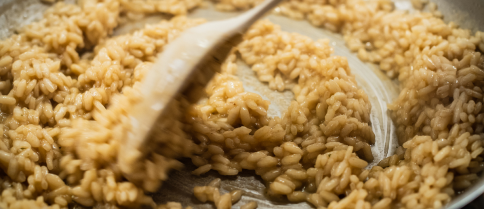 En premier lieu, il faut choisir la bonne variété de riz. Oubliez le basmati et optez pour un riz rond carnaroli ou arborio, parfaitement adaptés à la préparation d'un risotto grâce à leur richesse en amidon et leur capacité d'absorption. Surtout, ne le rincez pas avant de le cuisiner. Commencez par faire nacrer le riz dans un peu de matière grasse. Il faut que les grains soient translucides avant de les déglacer avec un vin blanc sec. La base d’un bon risotto, c’est également le bouillon. Préparez-le vous même de préférence.