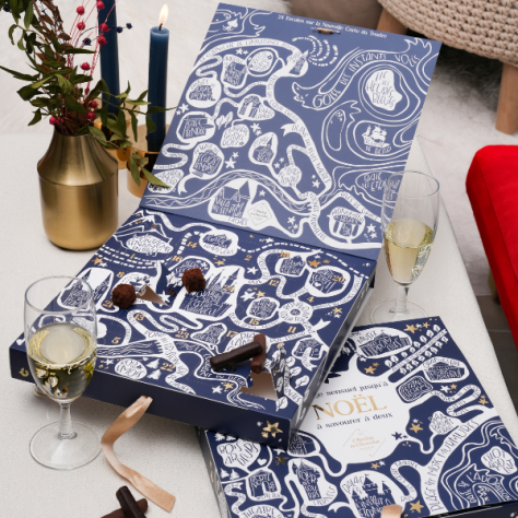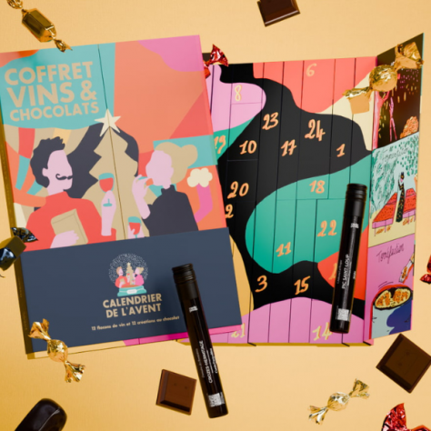Un calendrier de l’Avent pensé pour les épicuriens mêlant l’élégance des grands vins et la créativité chocolatée. Il réunit 12 flacons de vin de 6 cl issus de belles appellations françaises et 12 gourmandises imaginées par l’une des maisons de chocolat les plus inventives. Fruit de la rencontre entre Cuvée Privée, Flakon et Le Chocolat des Français, ce calendrier raffiné offre un voyage à travers de grands terroirs et des créations chocolatées originales. Un cadeau idéal pour faire patienter les amoureux du vin et du chocolat jusqu’aux fêtes.