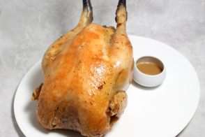 Une fois à la maison, le chapon doit être sorti de son emballage et roulé dans un torchon propre. Placé au réfrigérateur pendant 24 à 48 heures, sa chair se détend et gagne en tendreté.