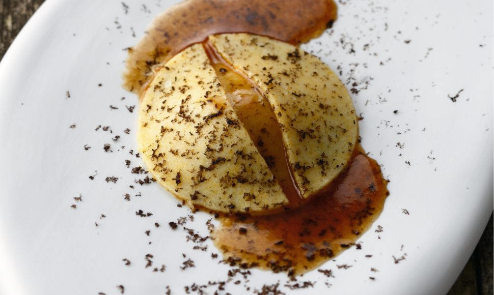 2 mm de polenta, jus au parfum des sous-bois, poussière de truffe