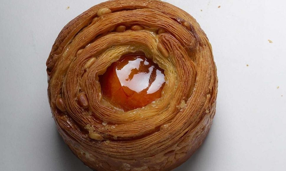 Cédric Grolet associe l'abricot au romarin dans cette viennoiserie élégante et estivale, confectionnée à partir d'une pâte à croissant.