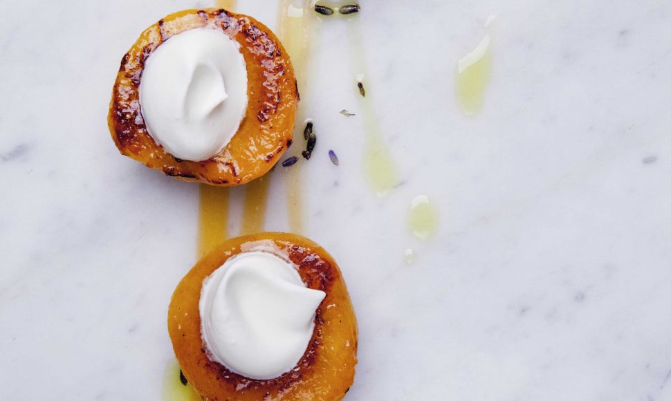 La crème mascarpone-lavande va commencer à fondre au contact des abricots rôtis. Ajoutez la vinaigrette à ce moment-là.
