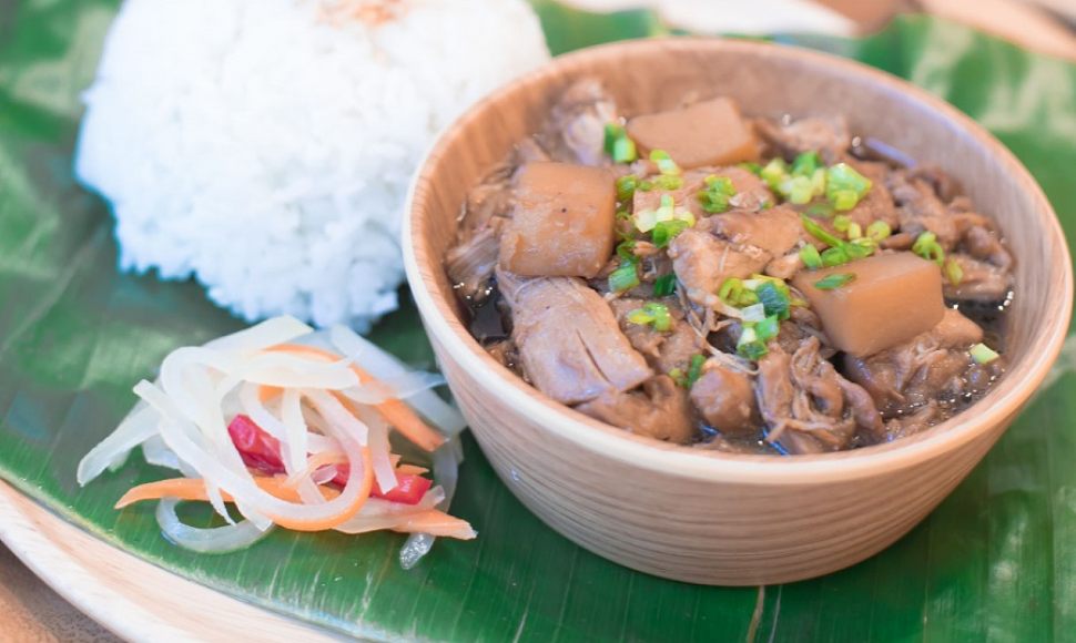 L'Adobo est le plat national du pays : un mijoté de poulet et de pommes de terre à la sauce soja et au vinaigre de canne à sucre, parfumé à l'ail et au laurier.