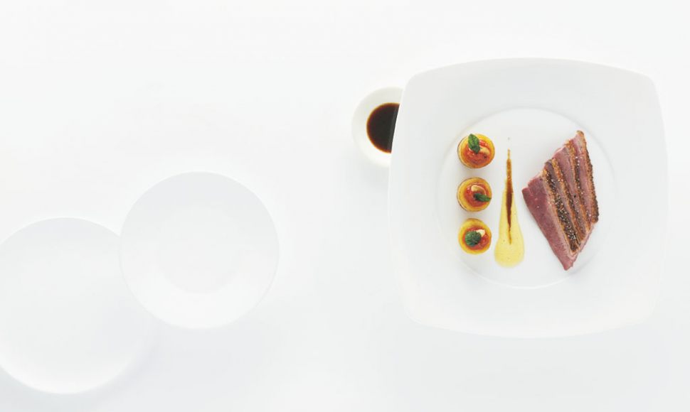 Aiguillettes de canard, « patatas bravas », jus de cuisson