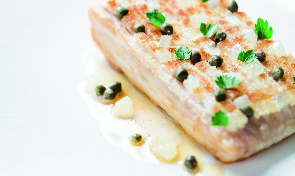 Coupez le pain de mie en cubes de 5 mm. Dans une poêle, chauffez légèrement le beurre, jetez-y les croûtons et faites-les sauter jusqu’à ce qu’ils dorent. Égouttez dans une passoire, débarrassez sur du papier absorbant et réservez au chaud. Égouttez les câpres et rincez-les sous l’eau froide, puis égouttez-les de nouveau. Effeuillez et lavez le persil. Pelez à vif les citrons, levez les suprêmes et taillez-les en petits cubes de 3 mm.