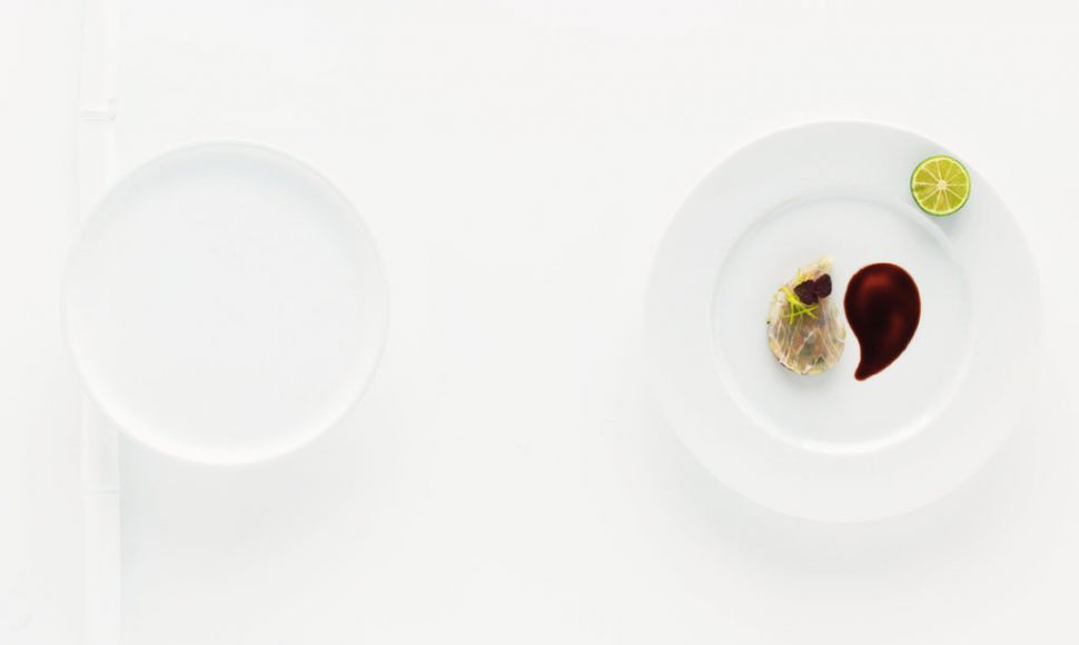Amadaï en fines tranches mariné au kombu, légumes en tartare, réduction d’un ponzu