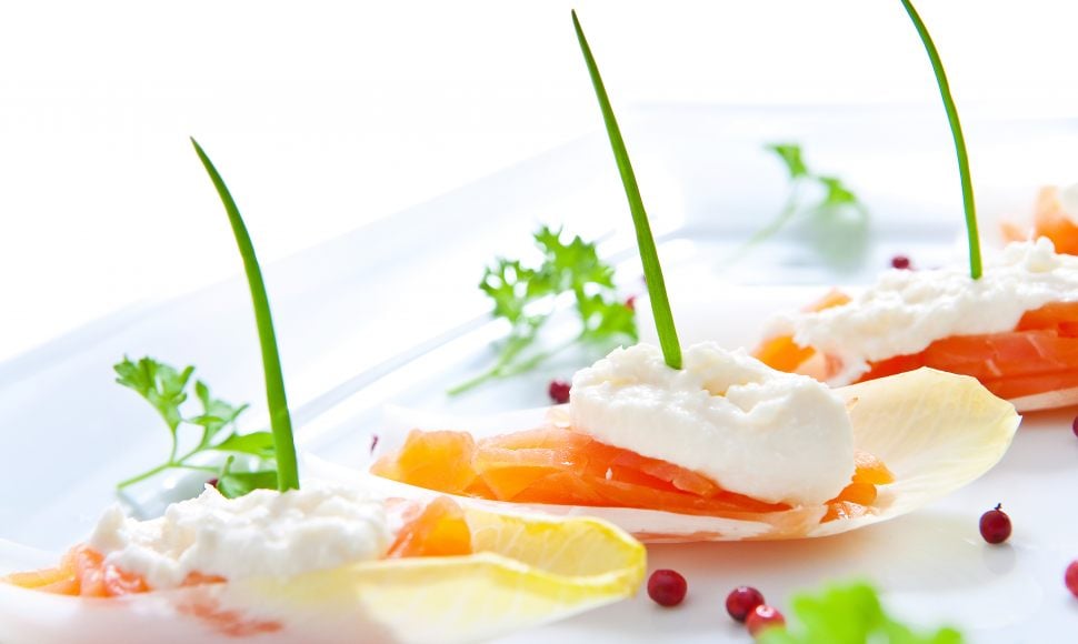 Déposer un peu de chantilly au creux des feuilles d’endive et y ajouter un peu de saumon fumé.