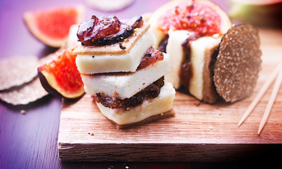 Ajouter une petite cuillère de confiture de figues puis recouvrir d'un morceau de brie puis de truffe. Terminer avec le carré de pain. Servir ces bouchées accompagnées de figues fraîches.