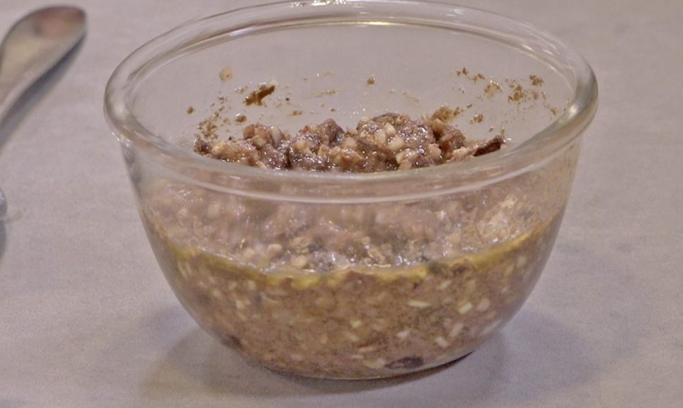 - 1 bonne cuillerée à soupe d’olives noires dénoyautées