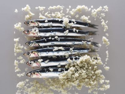 "C’est au cours du mois de mai que doit se faire le salage des anchois. Lorsqu’on les pêche au filet à mailles, ils sont souvent abîmés, perdant leur sang : ce sont en fait les meilleurs pour être salés. Malheureusement, ce mode de pêche se fait de plus en plus rare. Nous avons repris la technique de salage que nous a confiée une femme de pêcheur niçois."