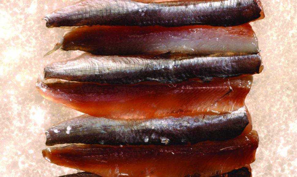 Gratter, ébarber et vider les anchois. Sectionner les têtes et les queues. Rincer les poissons à l’eau froide courante. Les éponger soigneusement dans un linge.