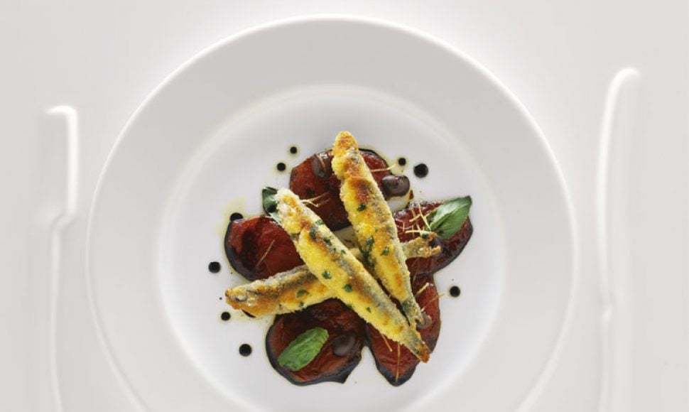 Anchois finement panés tomates mi-confites vinaigrées