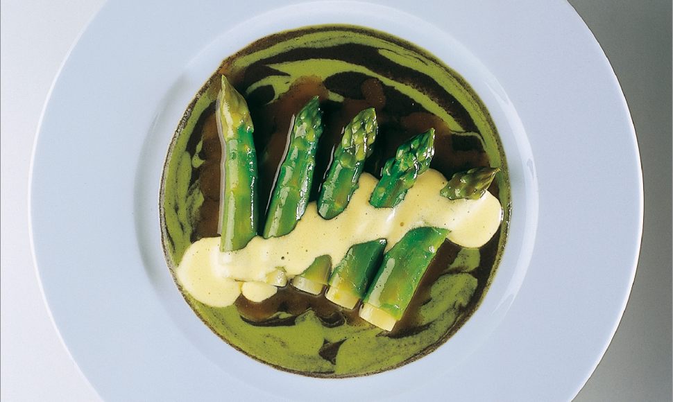 Asperges vertes bourgeoises de chez robert blanc, sauce mousseline