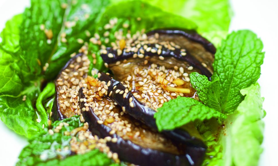 Lavez l'aubergine et coupez-la en deux dans la longueur. Faites-la cuire pendant 20 min à la vapeur, puis réservez.