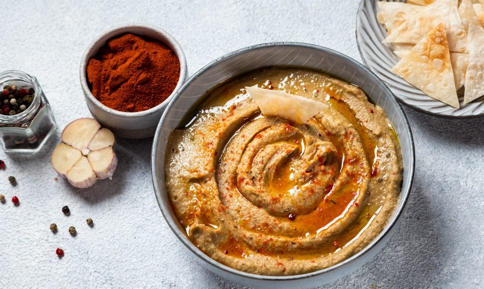 Onctueuse et crémeuse, cette purée d'aubergines est appelée au liban "moutabbal." On la retrouve aussi sous les noms "baba ghanouj", "baba ghanoush" ou encore "baba ghanoughe".